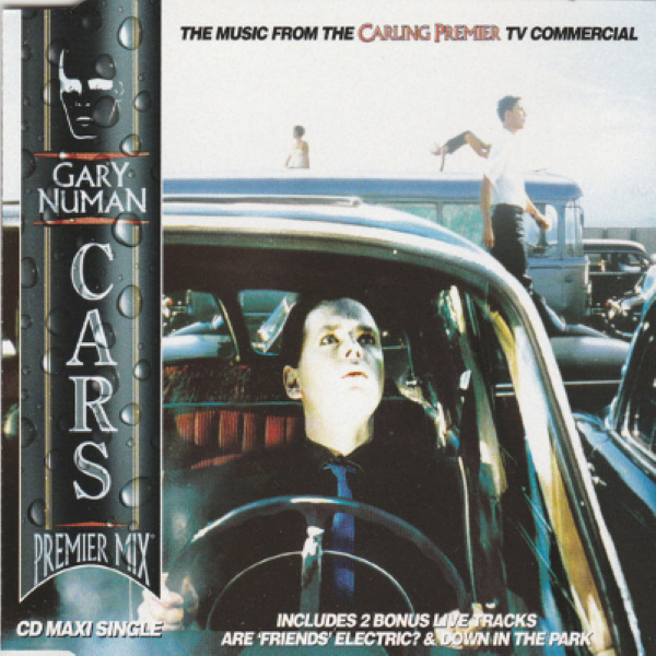 Taken from the ‘Carling Premier’ TV commercial, Numan’s track ‘Cars (The Premium Mix)’ spent 4 weeks in all in the UK music charts in 1996. The single entered the music charts on 16 March 1996 at its ‘peak position’ No.17. The singles four-week chart life was all at positions within the chart’s ‘Top 75’, three in ‘Top 40’ spots. The release last appeared in the music charts for week commencing 06/04/1996.